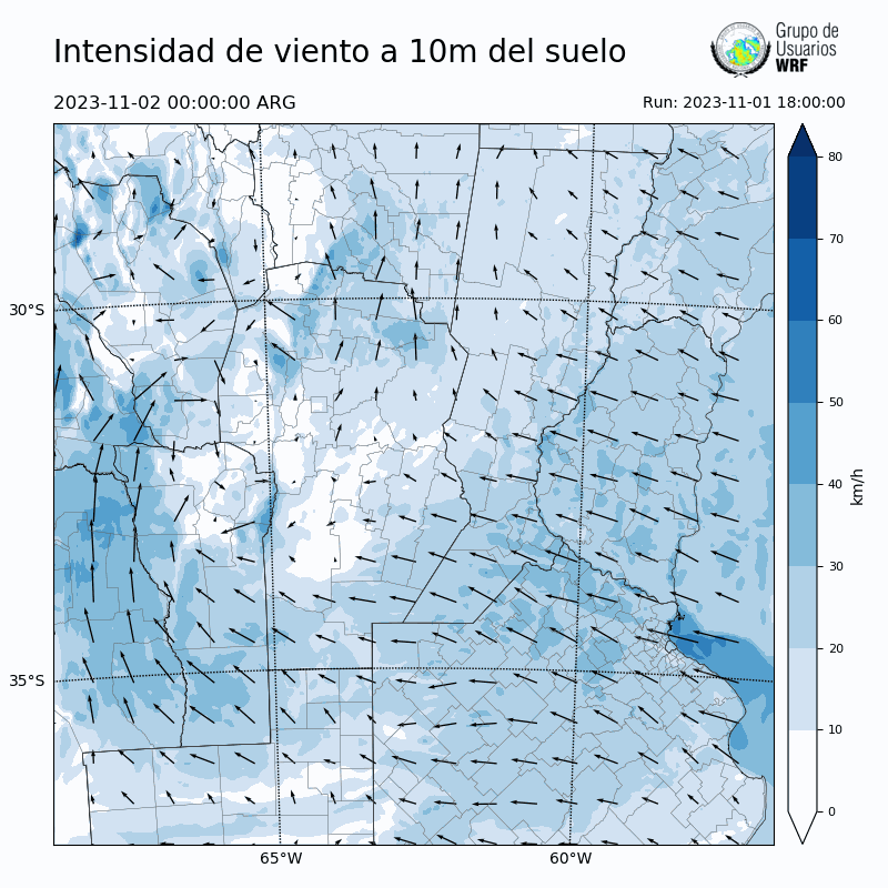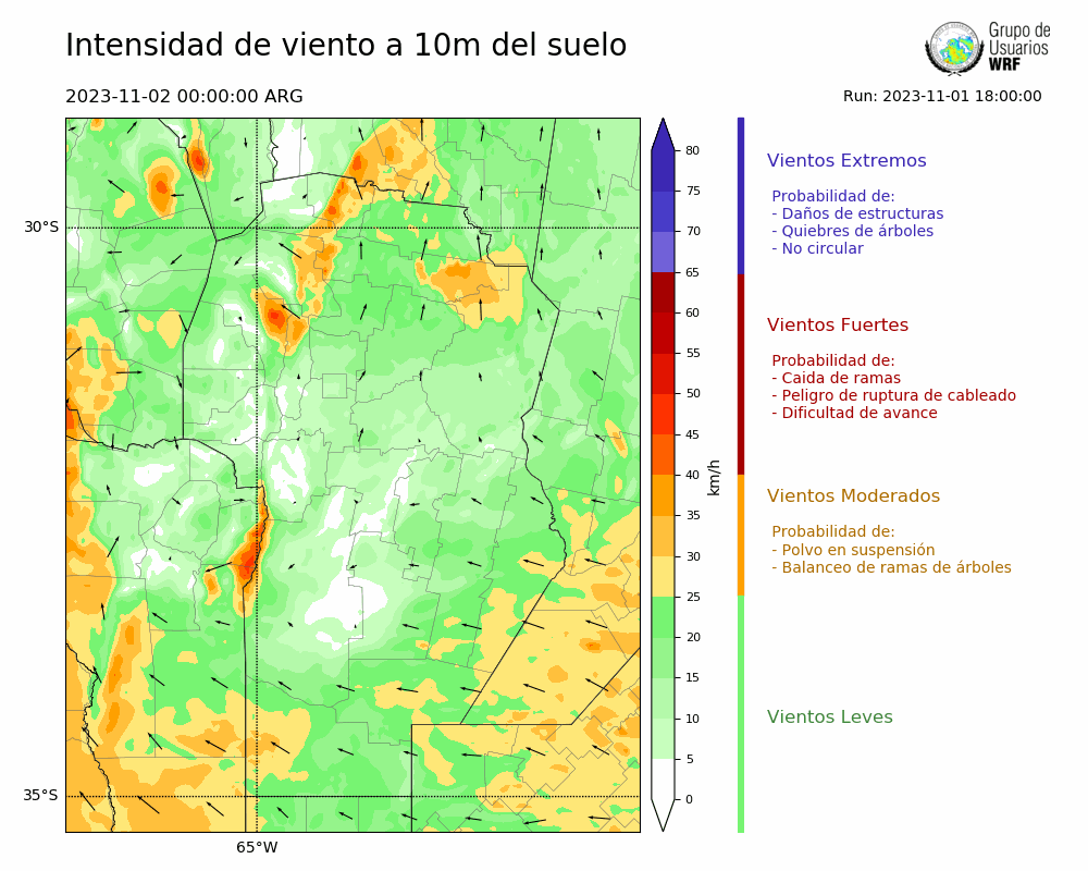 • Intensidad máxima: 8.25 km/h (02/11/2023 06hs.)