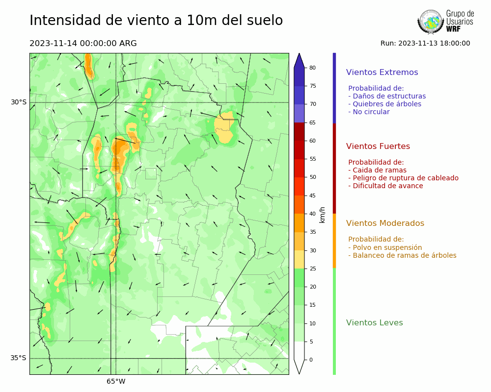 • Intensidad máxima: 18.29 km/h (14/11/2023 11hs.)