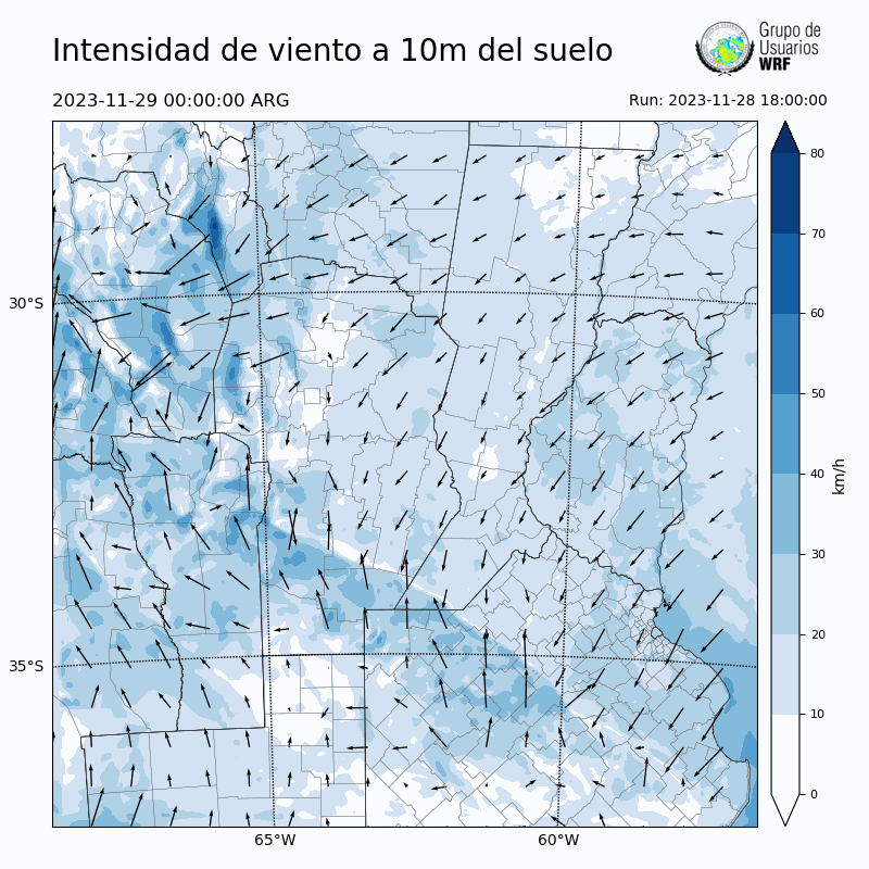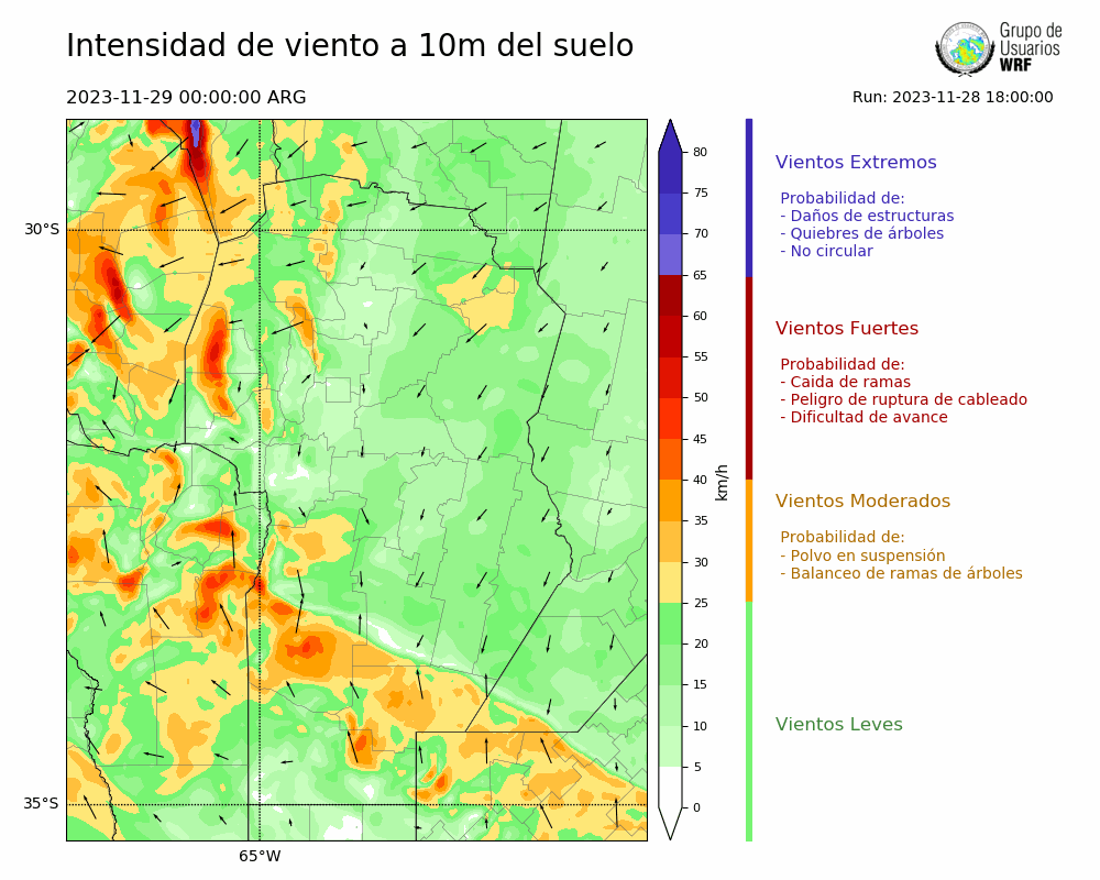 • Intensidad máxima: 31.80 km/h (29/11/2023 08hs.)