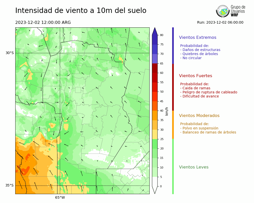• Intensidad máxima: 12.86 km/h (02/12/2023 16hs.)