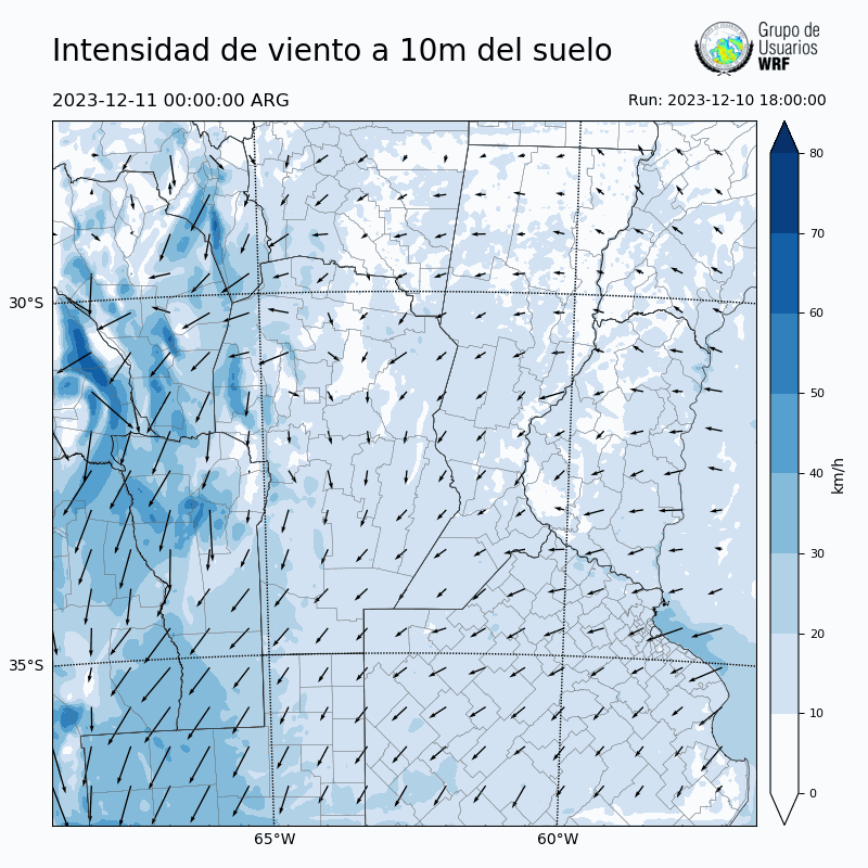 • Intensidad máxima: 5.91 km/h (11/12/2023 00hs.)