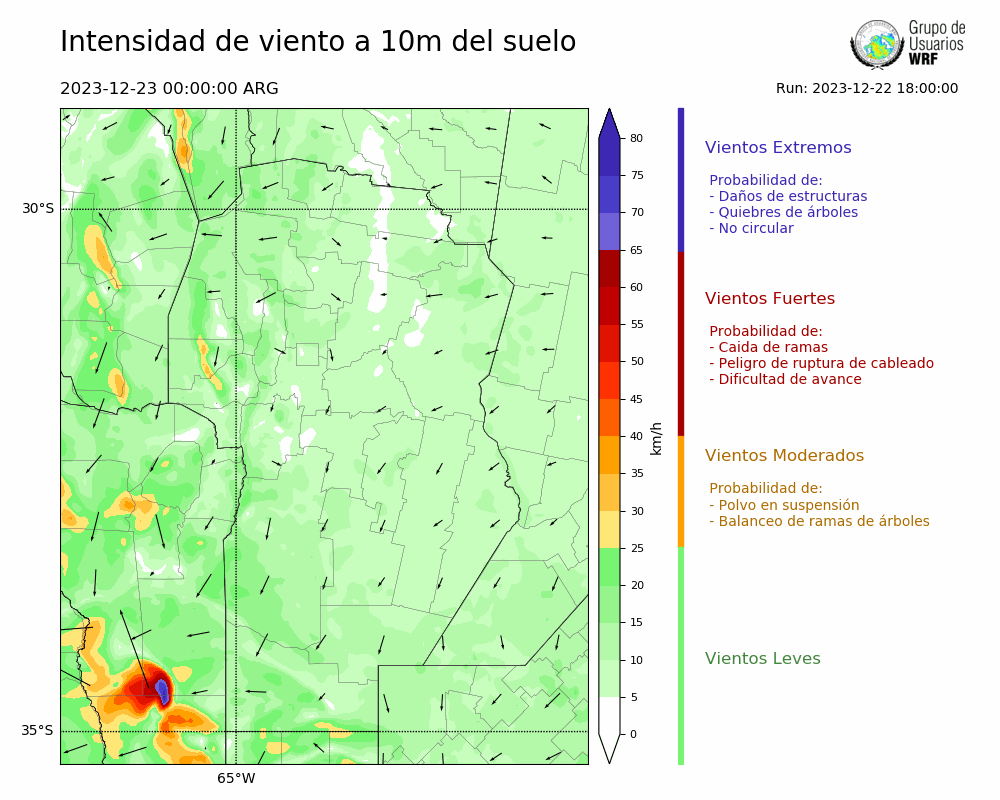 • Intensidad máxima: 12.41 km/h (23/12/2023 11hs.)