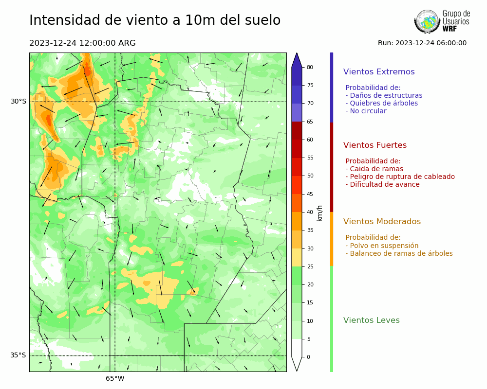 • Intensidad máxima: 6.05 km/h (24/12/2023 22hs.)
