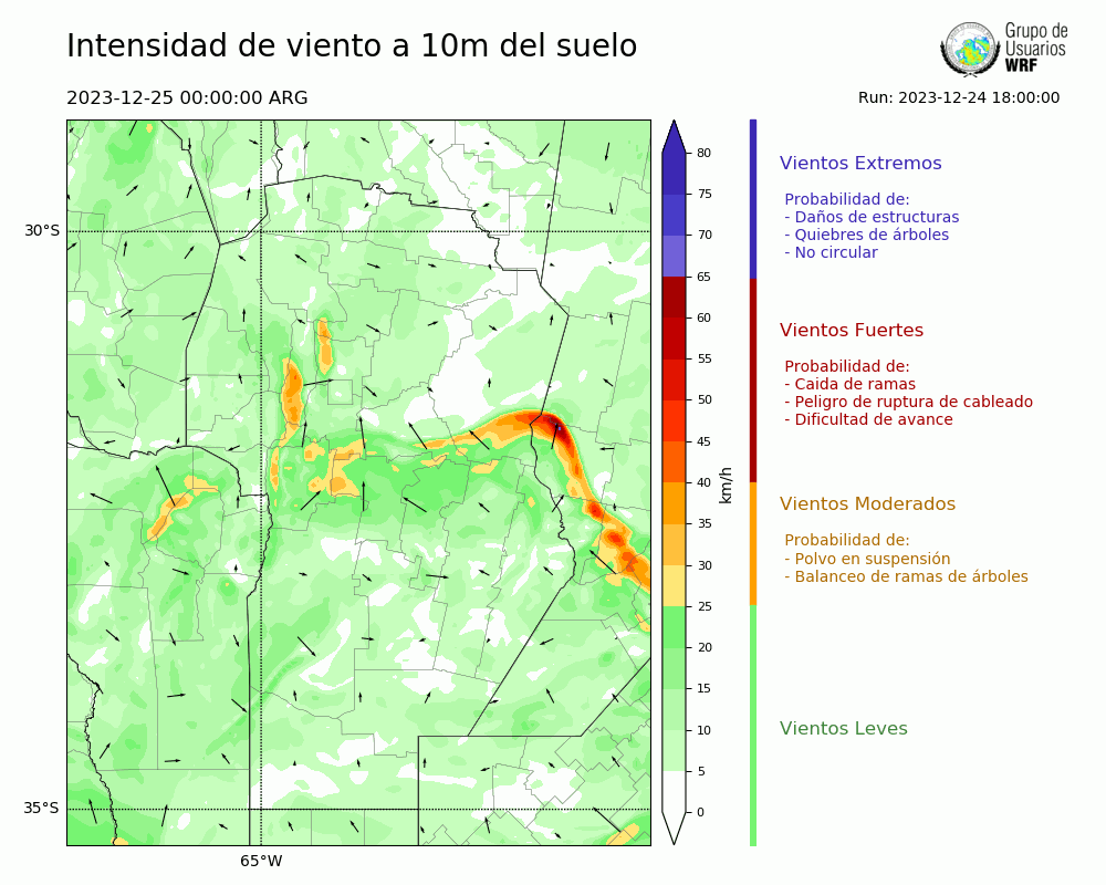 • Intensidad máxima: 23.75 km/h (25/12/2023 11hs.)