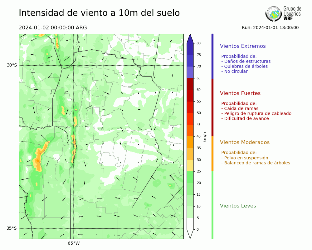 • Intensidad máxima: 7.98 km/h (02/01/2024 11hs.)