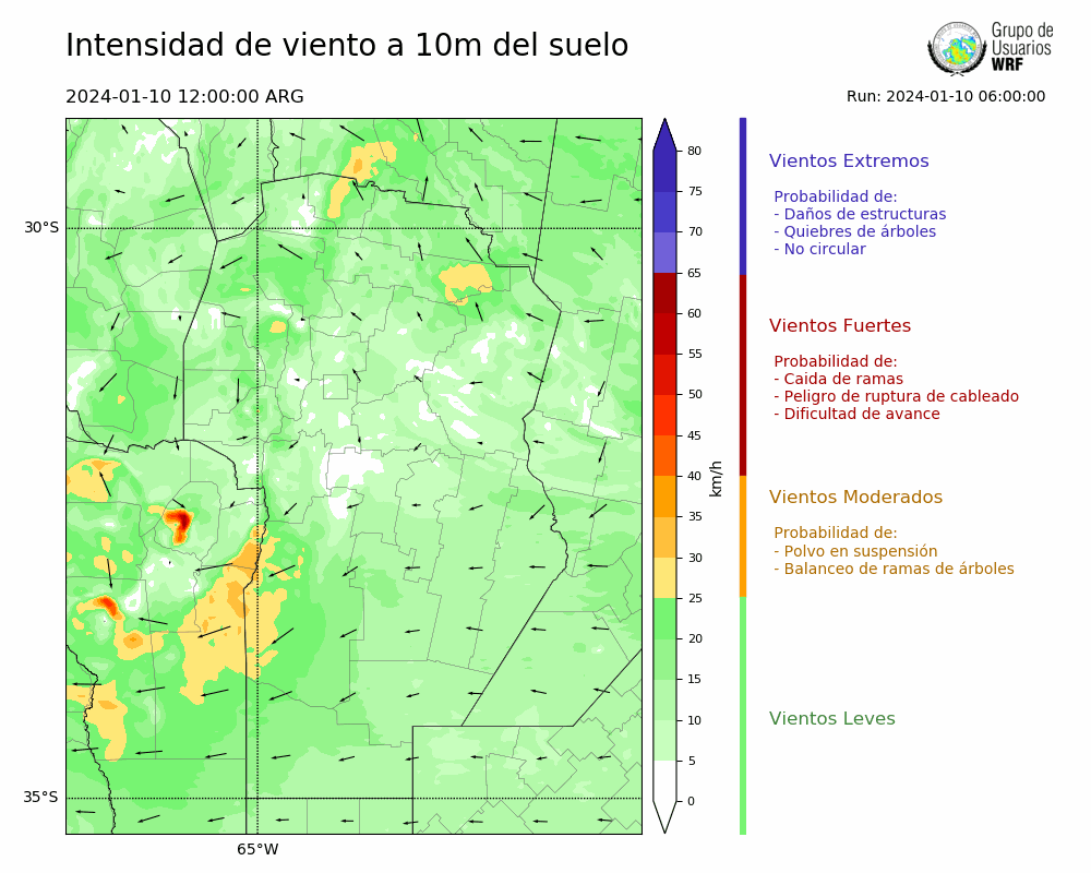 • Intensidad máxima: 7.84 km/h (10/01/2024 15hs.)