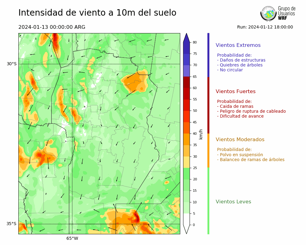 • Intensidad máxima: 14.28 km/h (13/01/2024 11hs.)