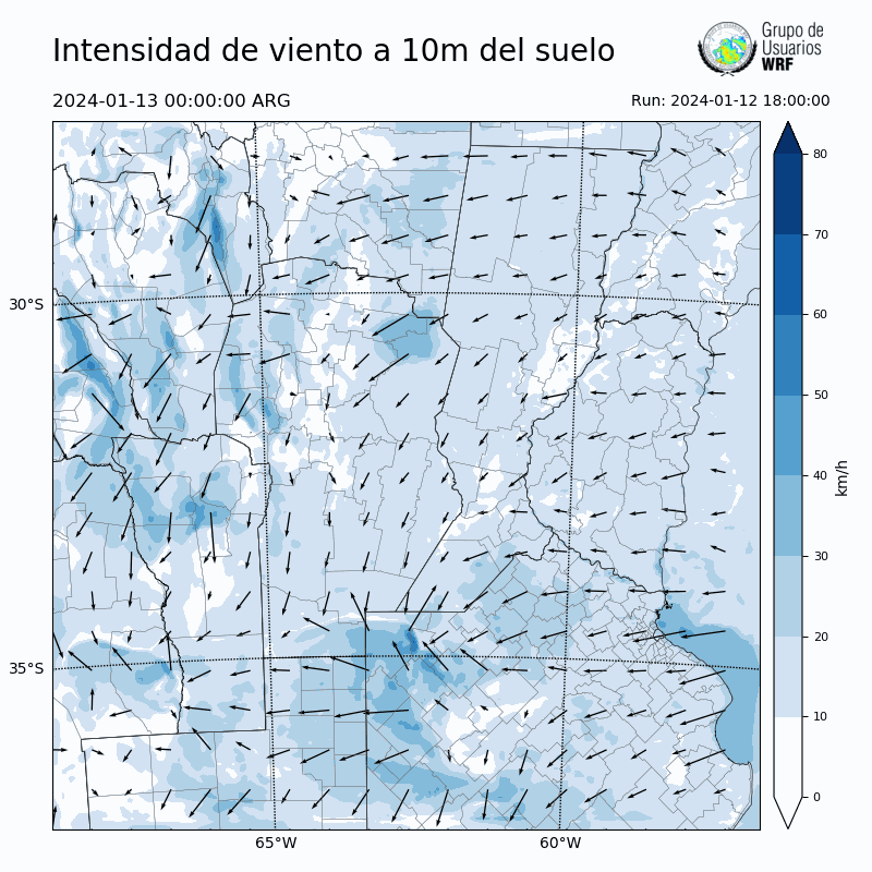 • Intensidad máxima: 9.29 km/h (13/01/2024 03hs.)