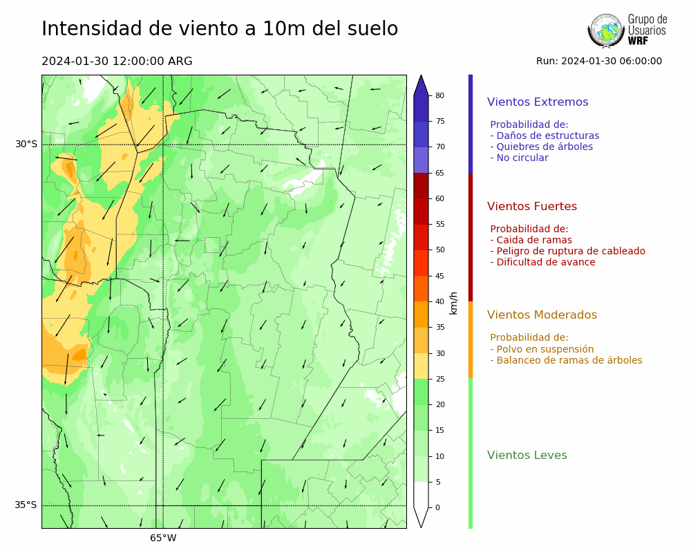 • Intensidad máxima: 18.92 km/h (30/01/2024 18hs.)