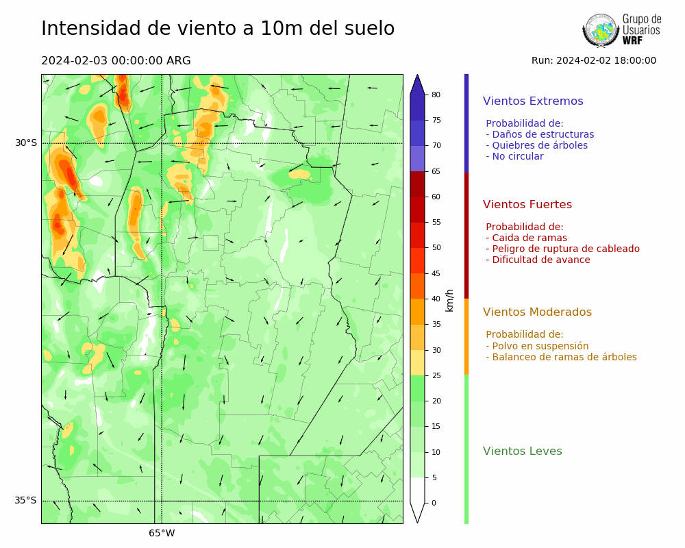 • Intensidad máxima: 7.06 km/h (05/02/2024 05hs.)