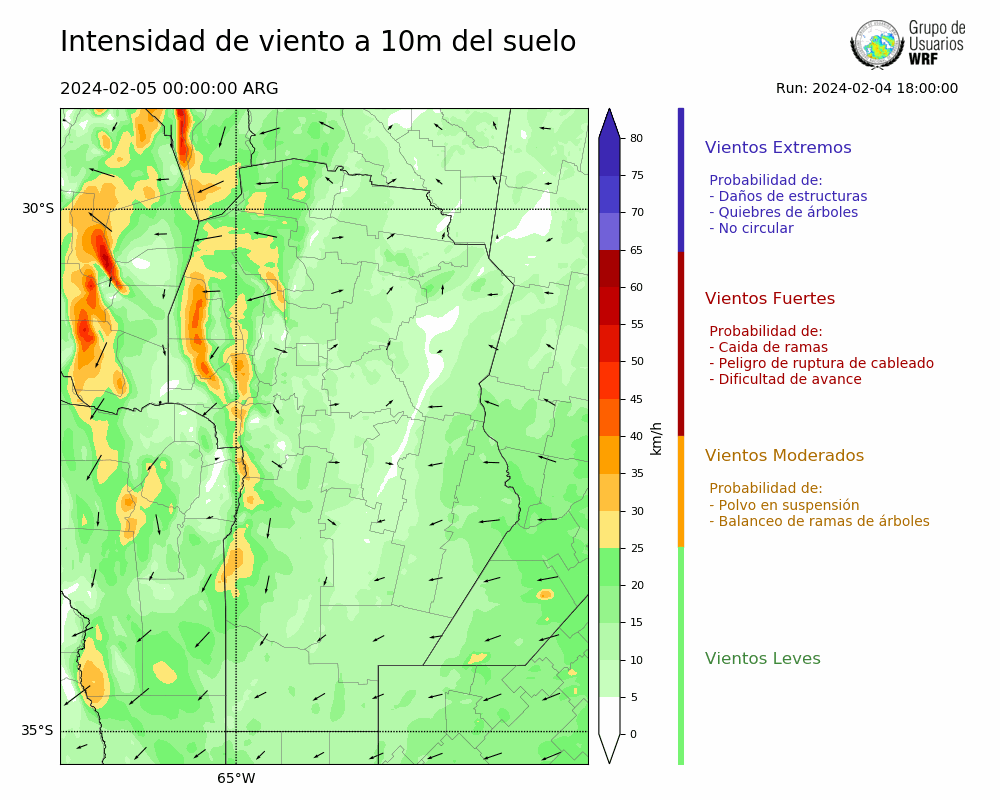 • Intensidad máxima: 8.28 km/h (06/02/2024 06hs.)