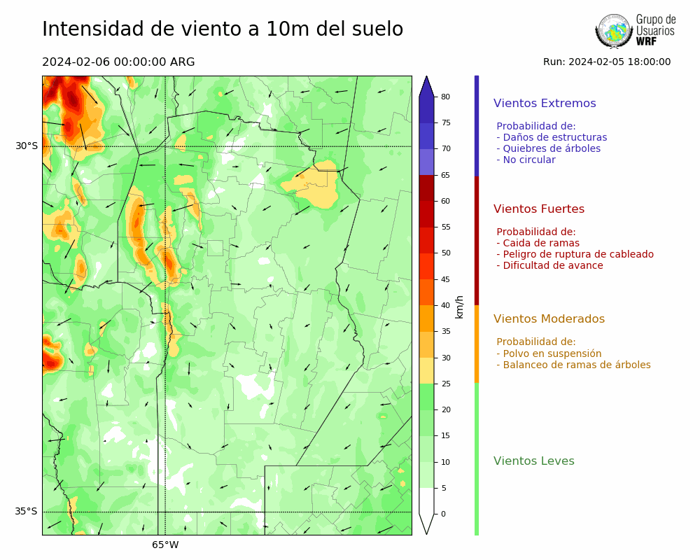 • Intensidad máxima: 6.51 km/h (06/02/2024 06hs.)