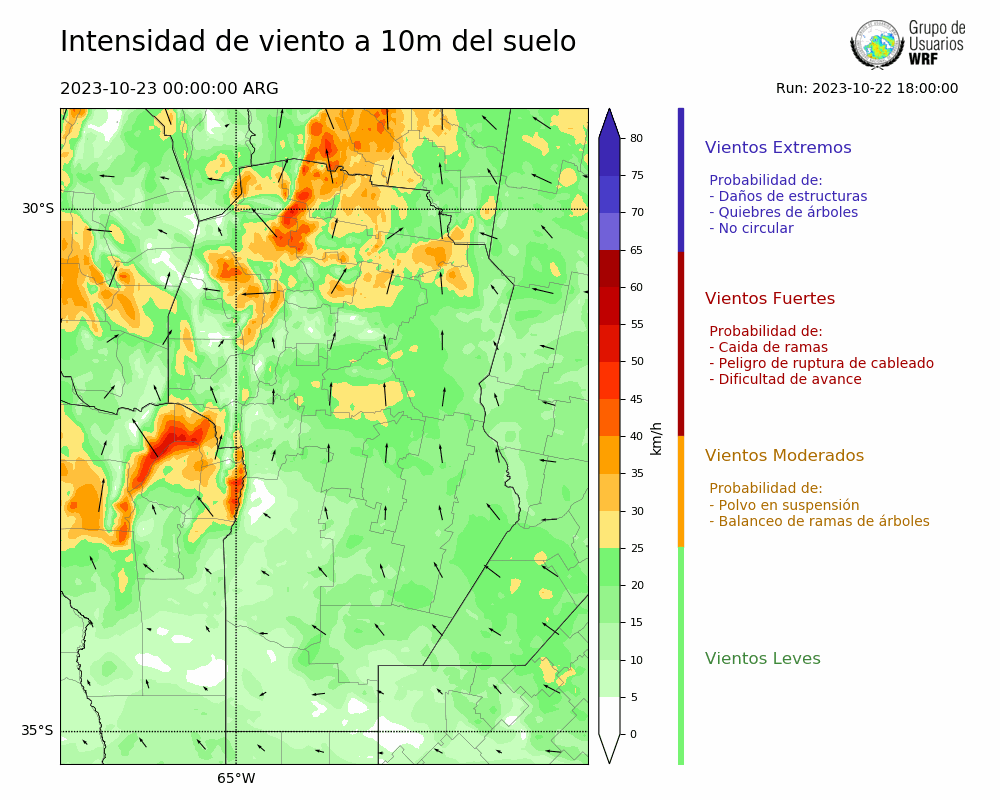 • Intensidad máxima: 6.05 km/h (23/10/2023 06hs.)