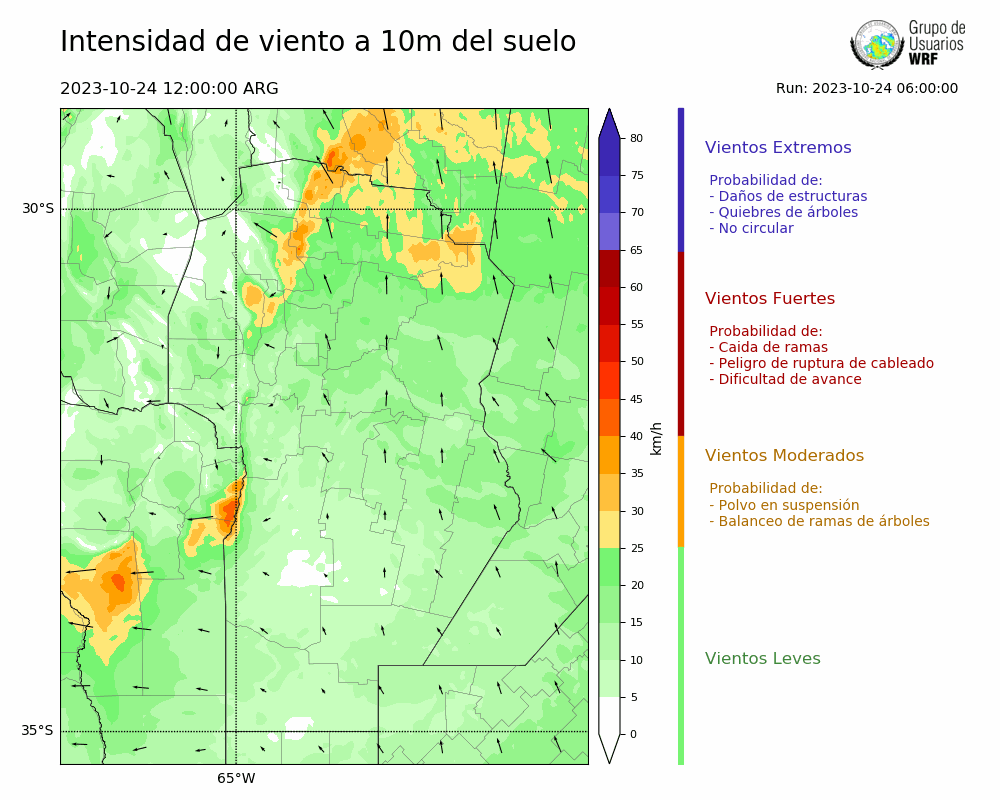 • Intensidad máxima: 10.29 km/h (26/10/2023 05hs.)
