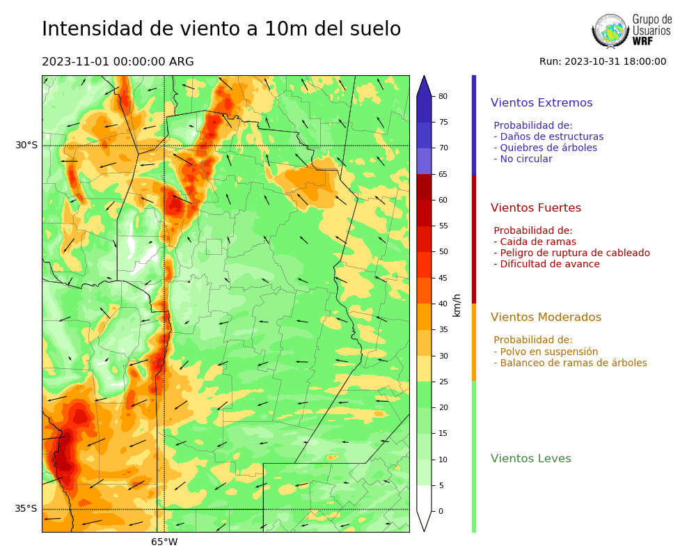 • Intensidad máxima: 4.51 km/h (02/11/2023 02hs.)