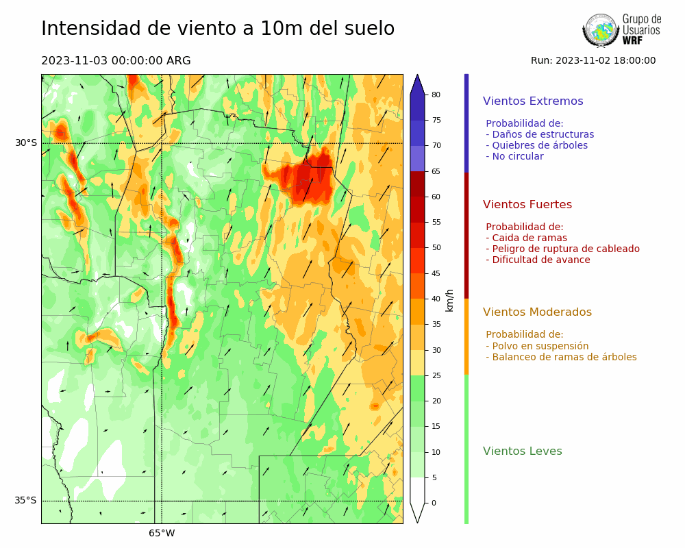 • Intensidad máxima: 9.40 km/h (05/11/2023 05hs.)