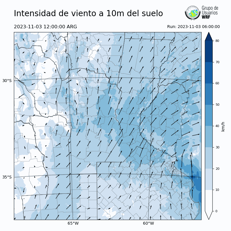 • Intensidad máxima: 11.65 km/h (04/11/2023 05hs.)