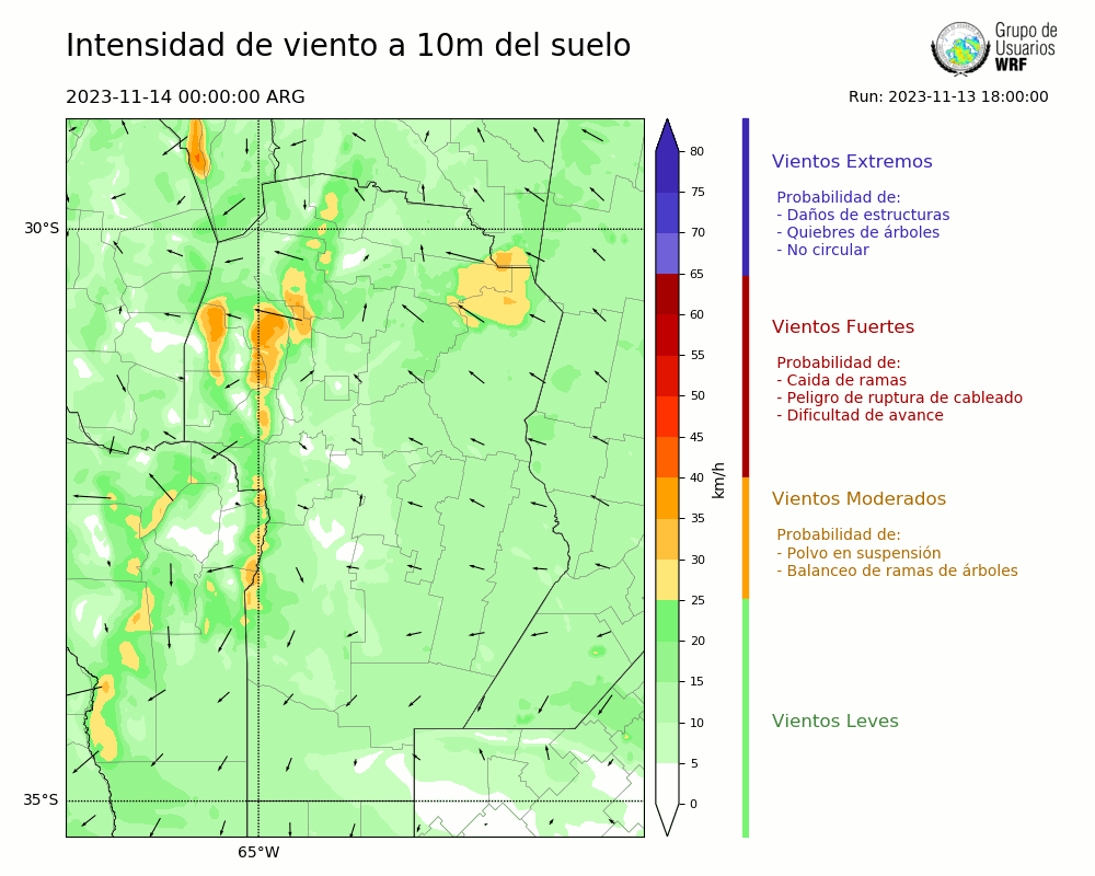• Intensidad máxima: 13.76 km/h (15/11/2023 18hs.)
