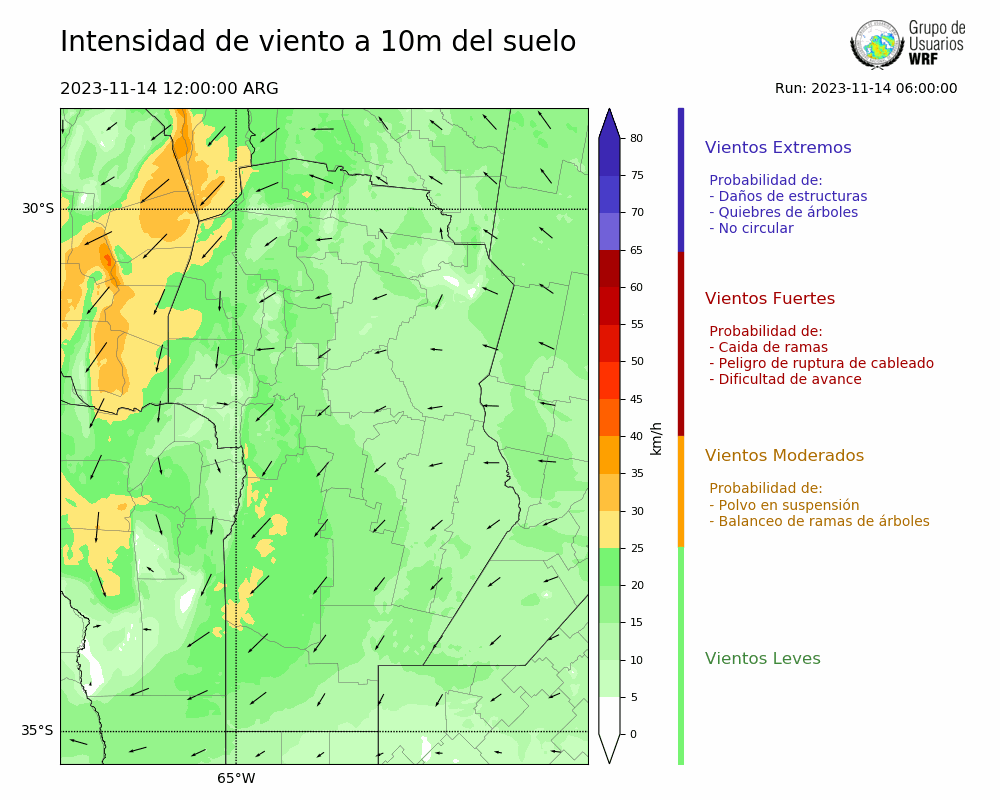 • Intensidad máxima: 17.21 km/h (14/11/2023 13hs.)