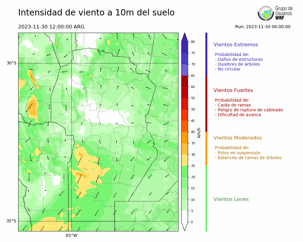• Intensidad máxima: 11.79 km/h (02/12/2023 12hs.)