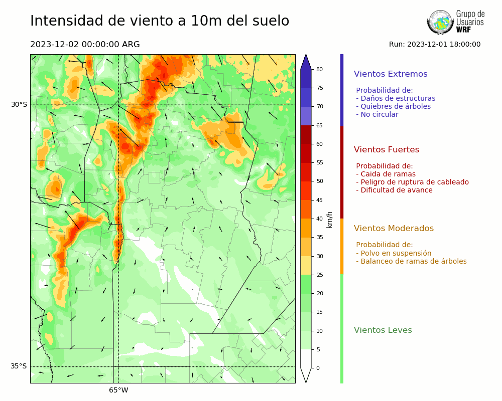 • Intensidad máxima: 10.82 km/h (02/12/2023 14hs.)