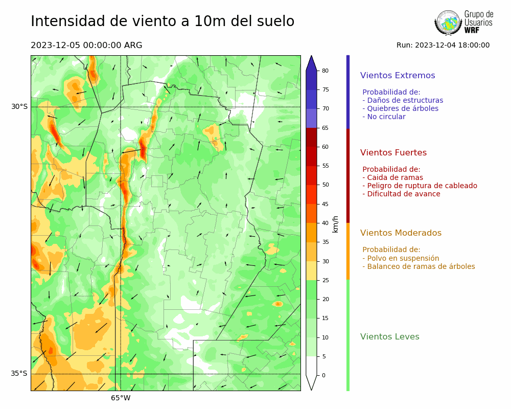 • Intensidad máxima: 9.03 km/h (05/12/2023 01hs.)