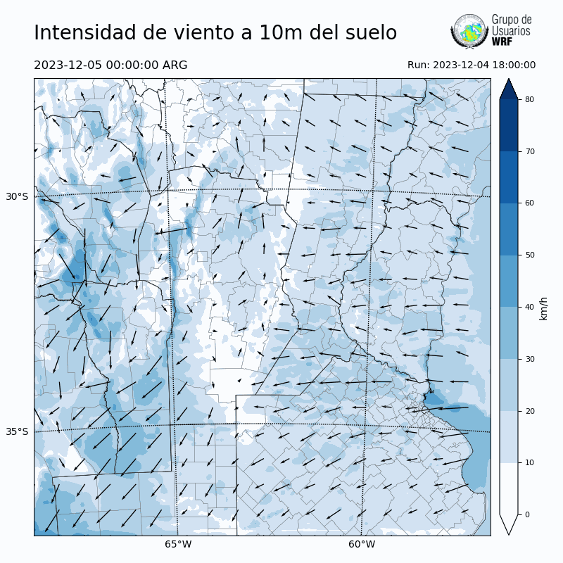 • Intensidad máxima: 6.96 km/h (07/12/2023 01hs.)