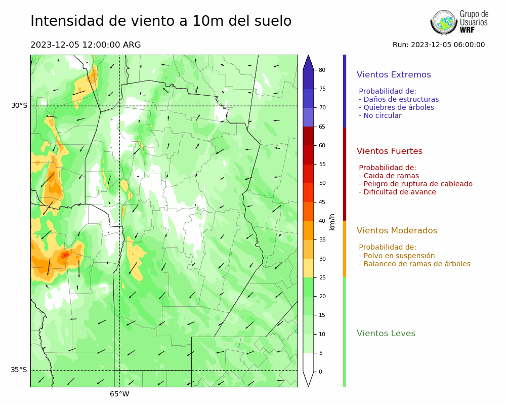• Intensidad máxima: 8.48 km/h (06/12/2023 21hs.)