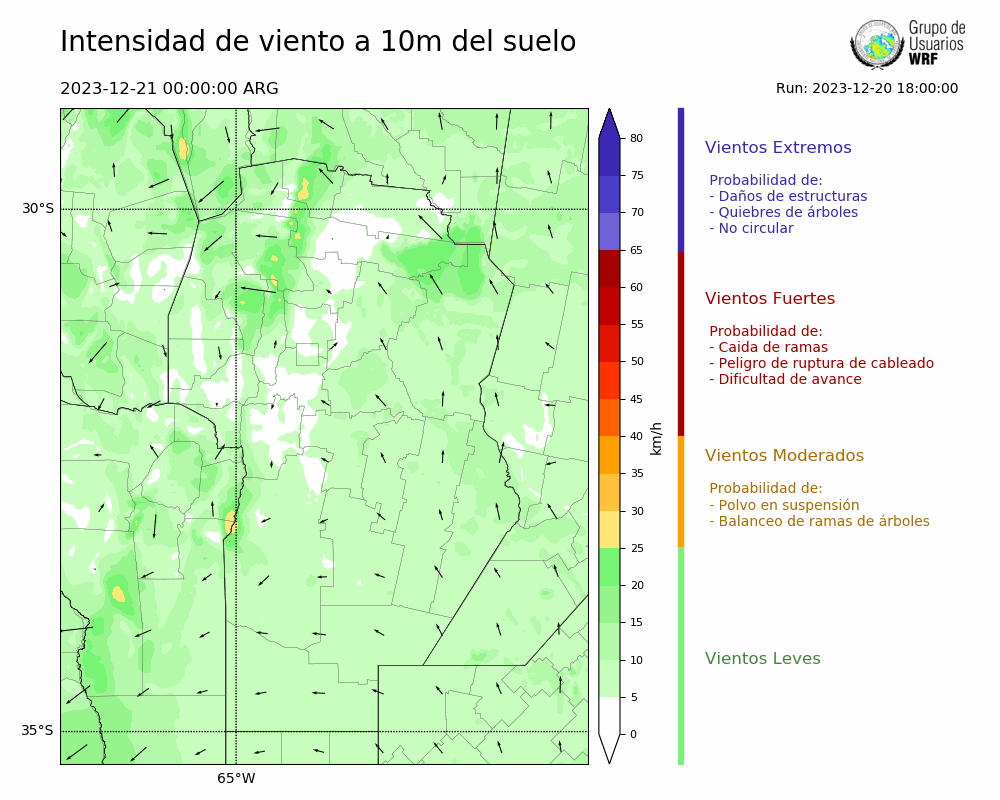 • Intensidad máxima: 9.92 km/h (21/12/2023 11hs.)