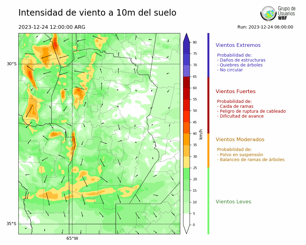 • Intensidad máxima: 9.54 km/h (24/12/2023 22hs.)