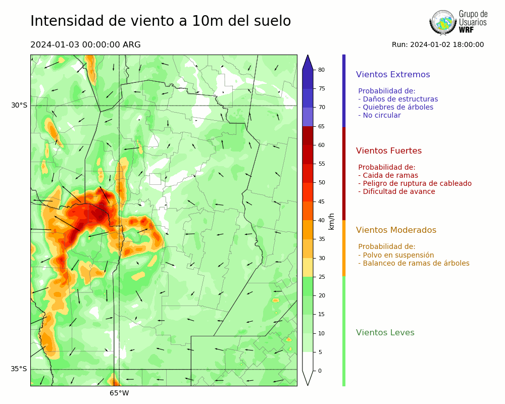 • Intensidad máxima: 23.55 km/h (03/01/2024 02hs.)