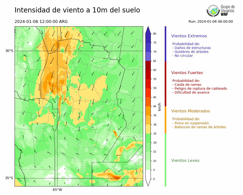 • Intensidad máxima: 26.11 km/h (06/01/2024 19hs.)