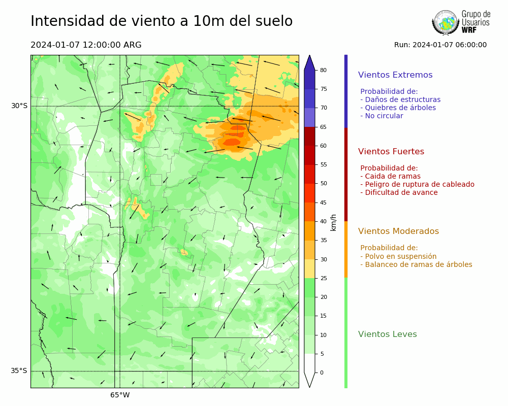 • Intensidad máxima: 9.90 km/h (09/01/2024 17hs.)