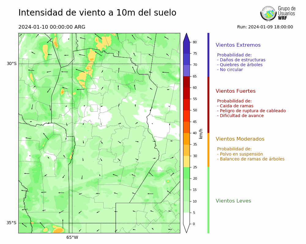 • Intensidad máxima: 9.21 km/h (10/01/2024 13hs.)