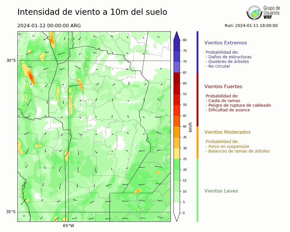 • Intensidad máxima: 6.28 km/h (12/01/2024 08hs.)