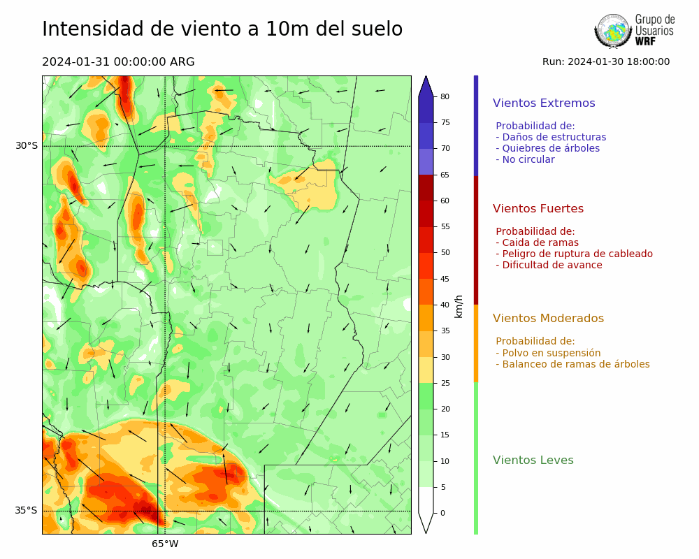 • Intensidad máxima: 14.70 km/h (31/01/2024 11hs.)