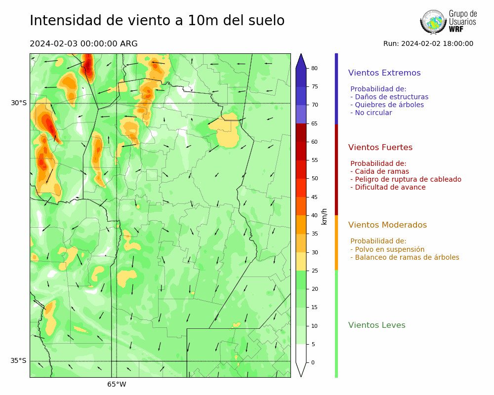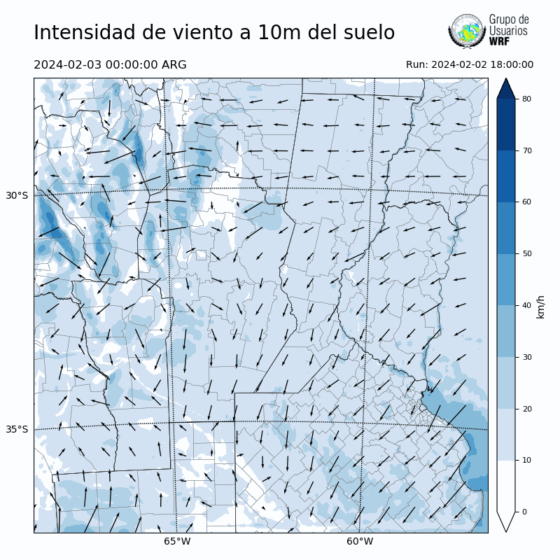 • Intensidad máxima: 12.11 km/h (03/02/2024 03hs.)