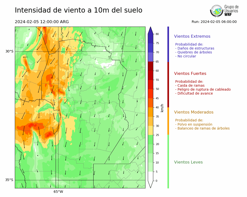 • Intensidad máxima: 8.39 km/h (06/02/2024 02hs.)