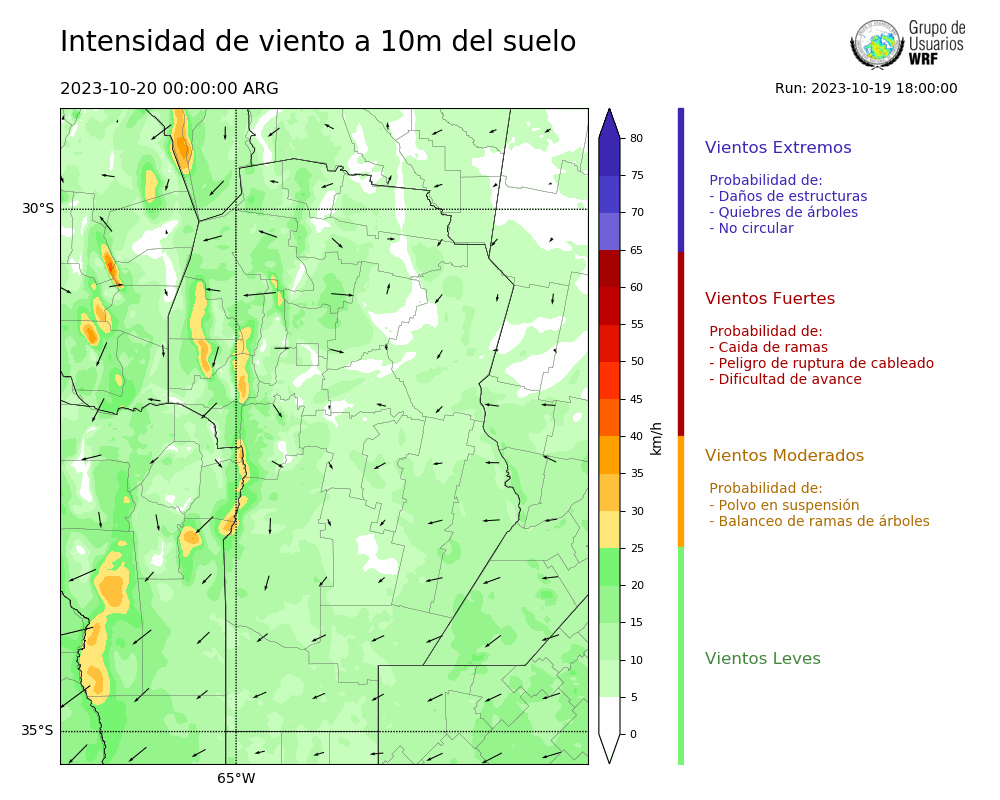 • Intensidad máxima: 18.05 km/h (20/10/2023 11hs.)