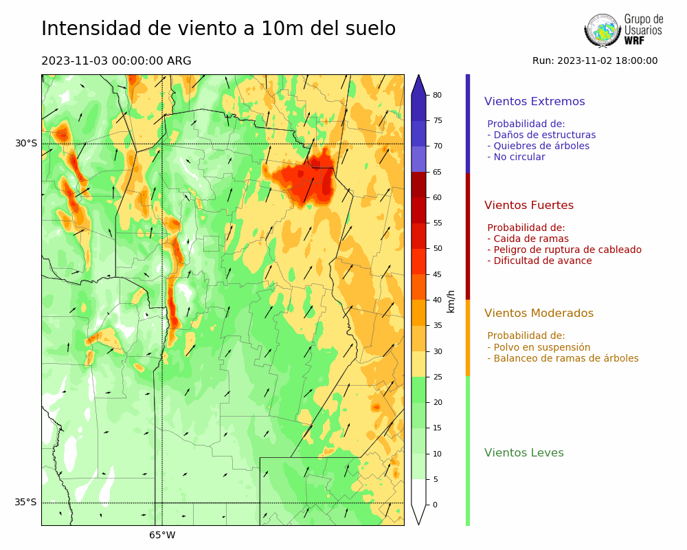 • Intensidad máxima: 22.25 km/h (03/11/2023 09hs.)