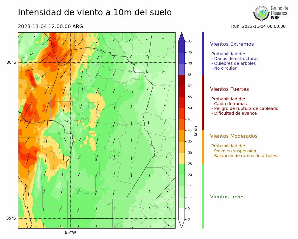 • Intensidad máxima: 4.30 km/h (06/11/2023 02hs.)