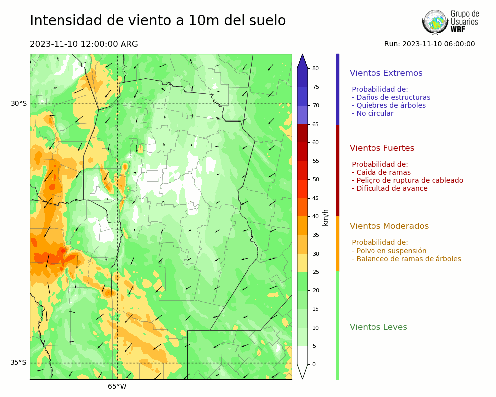 • Intensidad máxima: 10.85 km/h (12/11/2023 00hs.)