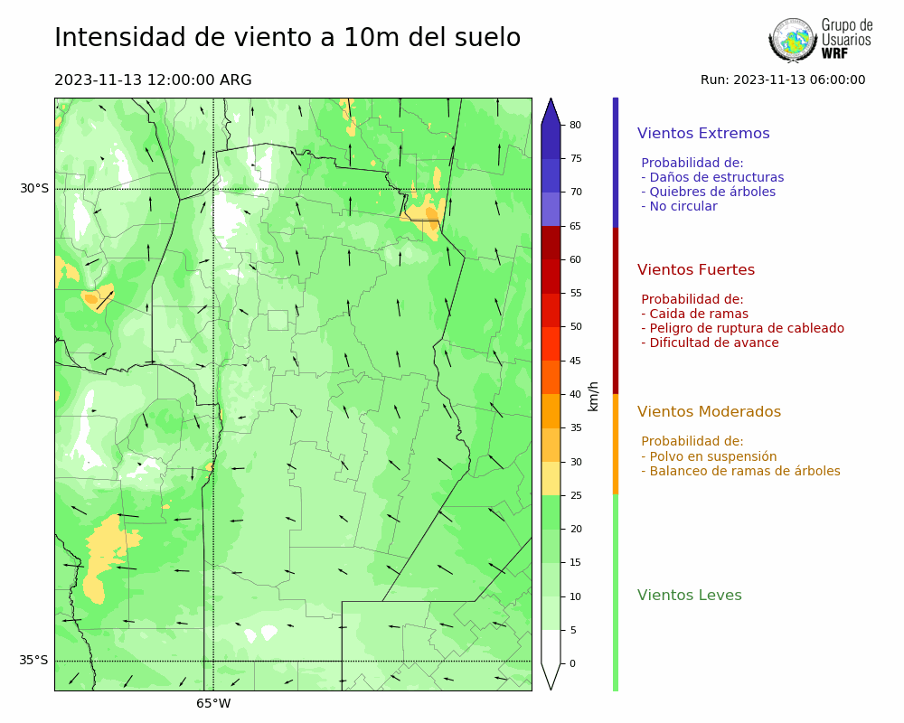 • Intensidad máxima: 12.17 km/h (13/11/2023 12hs.)