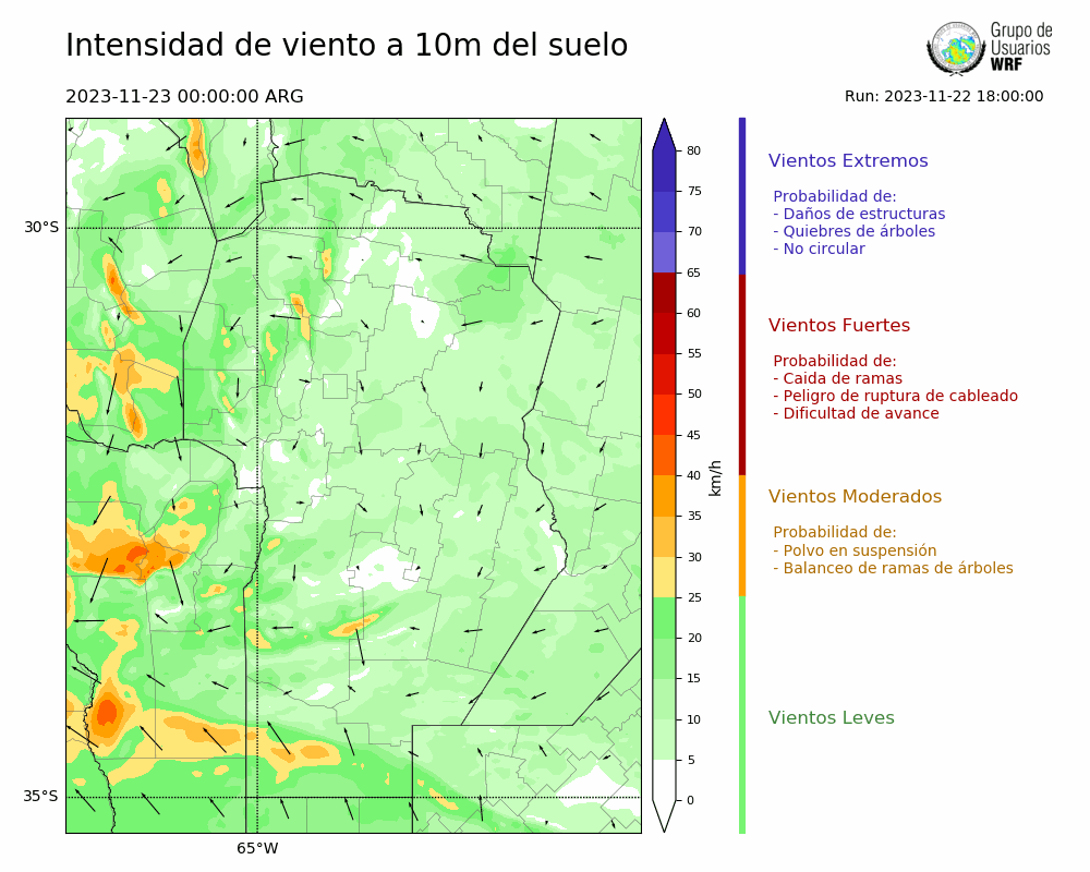 • Intensidad máxima: 6.70 km/h (24/11/2023 05hs.)