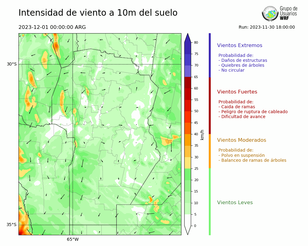 • Intensidad máxima: 20.93 km/h (01/12/2023 10hs.)