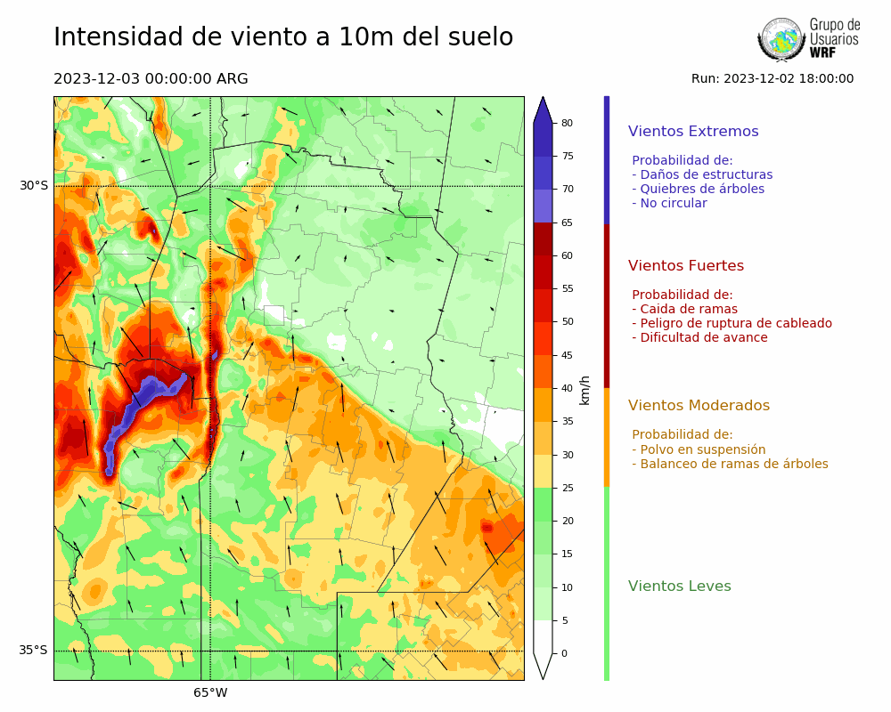 • Intensidad máxima: 27.51 km/h (03/12/2023 04hs.)