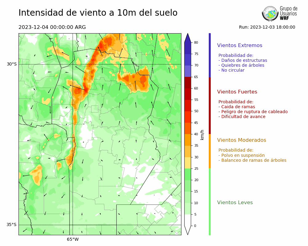 • Intensidad máxima: 8.92 km/h (04/12/2023 00hs.)