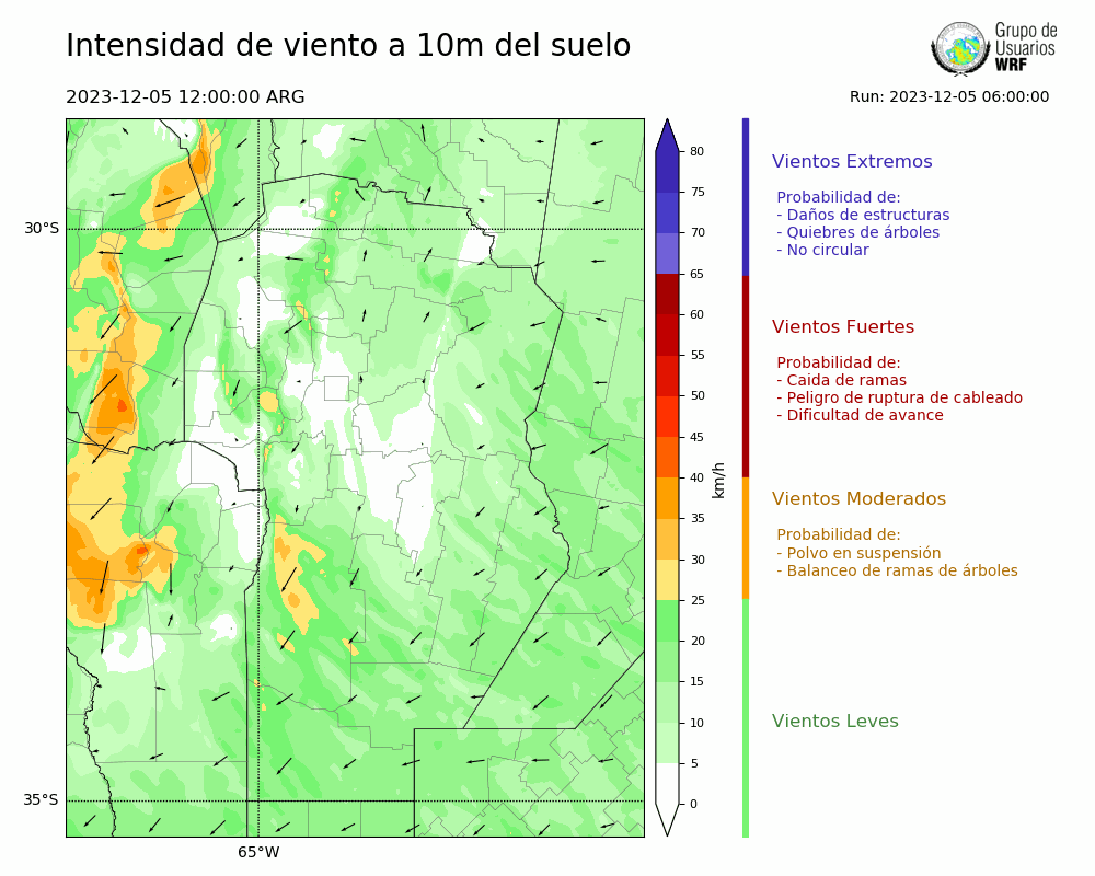 • Intensidad máxima: 15.60 km/h (05/12/2023 17hs.)