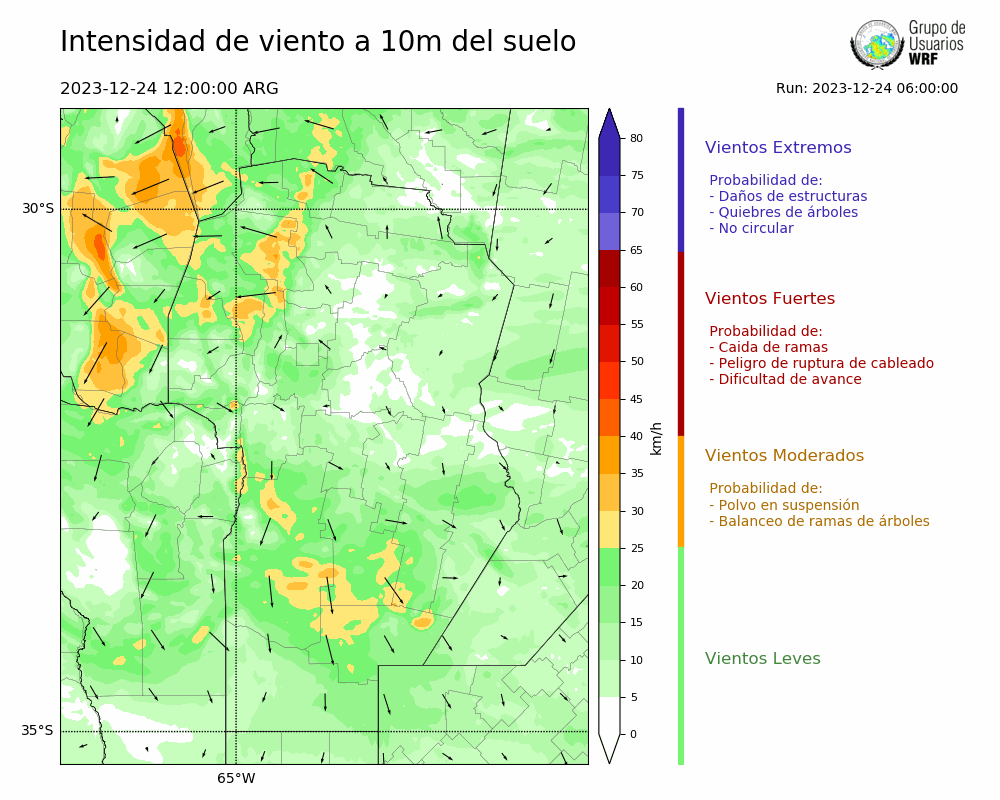 • Intensidad máxima: 6.61 km/h (24/12/2023 22hs.)