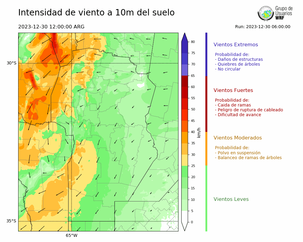 • Intensidad máxima: 9.48 km/h (31/12/2023 04hs.)